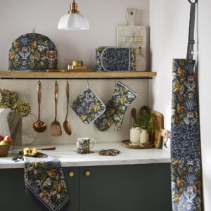 Εμπνευσμένο από το κλασικό στιλ του William Morris, το σχέδιο συνδυάζει σπουργίτια που ακροβατούν σε κλαδιά, λουλούδια σε πλήρη άνθιση και κομψά φύλλα που δημιουργούν μια αρμονική, καλλιτεχνική σύνθεση. Οι βαθιές σκούρες αποχρώσεις δένουν υπέροχα με πράσινα του βρύου και ζεστές ώχρες, ενώ οι ροζ πινελιές προσθέτουν απαλότητα και ζωντάνια.